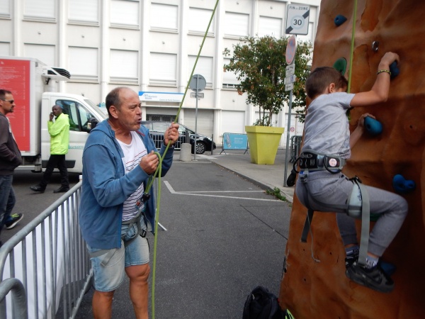 Le club alpin français de Lyon- Villeurbanne participait comme des dizaines d'autres clubs à la biennale des associations ce dimanche 10 septembre 2017 à VILLEURBANNE. En plus du traditionnel stand, un mur d'escalade loué au CPEA a fait le bonheur des enfants. L'engouement pour l'escalade des enfants, les demandes des parents n'ont pas cessé de 10 h du matin à 18 h le soir. La tranche d'âge 6-9 ans était la plus représentée sur le mur et privilégiée par les parents pour les renseignements. Ils étaient orientés vers les clubs qui proposaient cette tranche d'âges. Les quelques bénévoles escalade du caf de LV, ainsi que Nicolas salarié du CPEA n'ont pas chômé. Merci à tous. François PAILLIER