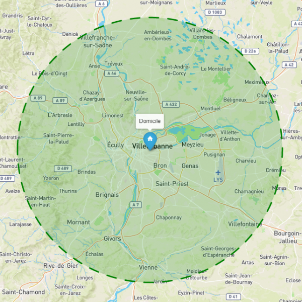 Zone des 30km autour de l'adresse du Club Alpin Lyon Villeurbanne