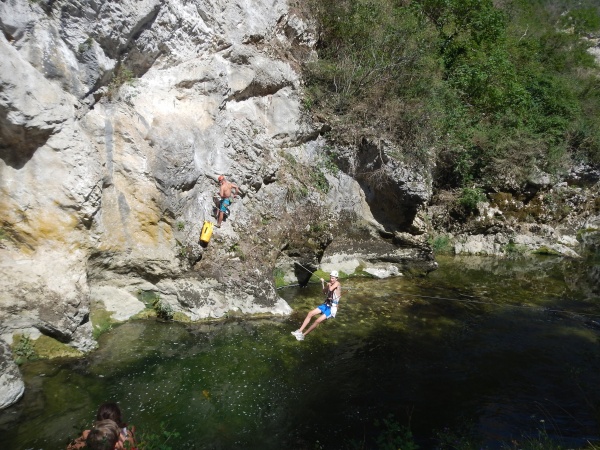 Passage de tyrolienne sur la Bourne