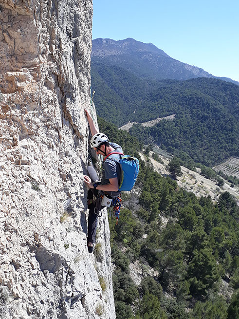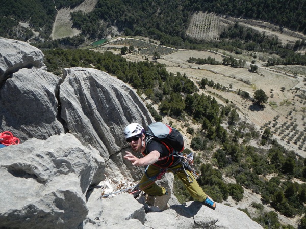 Olivier dans le crux de sortie de "la mesange". La clé c'est l'engagement...