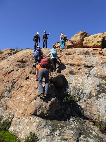Tantôt sur les sommets dominant la mer, au milieu des chênes lièges torturés par le vent et des rochers rouges typiques de ce massif, tantôt sur les sentiers côtiers, notre groupe découvrira au fil des jours Le pic de l'Ours, le rocher Saint-Barthélémy et le belvédère du Cap Roux, le mont Vinaigre (point culminant du massif à 614 m), le Rocher de Roquebrune et deux sentiers côtiers