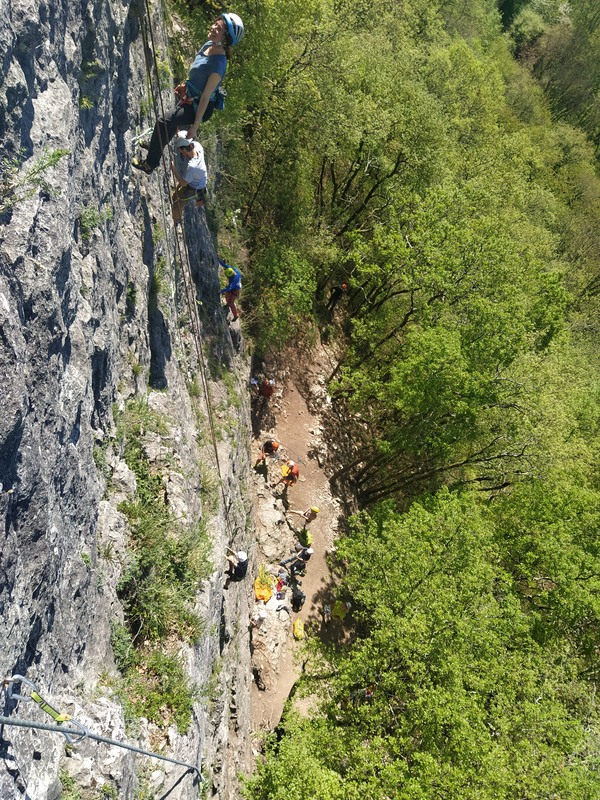 Des grimpeurs (es) motivés et sérieux sur le rocher et une vue printanière sur le lac du Bourget en haut des voies ont permis de réussir cette journée de grimpe. Un premier secteur d'échauffement, mais obligation de se longer sur le câble de la main courante, puis déplacement sur le second secteur un peu plus haut sur la falaise. Une fatigue généralisée c'est fait sentir en fin d'après midi pour la plupart des particpants car c'était la première sortie de l'année en extérieur. Merci aux photographes Gislhaine et Vivian.
