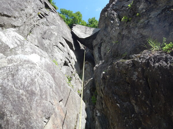 Lors de l'arrivée en voiture, l'apparition du site avec de grandes dalles noires (gneiss) surprend les participants. Une fois au pkg, puis au pied des voies en 1mn, chacun a pu touver sa couenne, grâce à une matérialisation des voies du vert (facile) au noir (très dur). La chaleur n'a eu peu d'incidence sur l'envie de découvrir ce site doté de tables, de bancs, d'un sanitaire et d'ombrage.