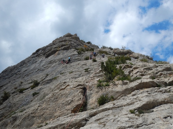 Le cycle INIT GV ET COUENNES2019 a débuté à Orpierre avec une bonne MTO. Les ateliers du samedi matin ont eu pour but de présenter le matériel (les cordes, vérifier la longueur, les défauts d'aspect, les détoronner, les lover, les différents points de fixation), puis des exerccices sur des relais fixés sur les terrasses de nos bungalows afin de réaliser les relais sur chaine, réversible, non réversible, en triplette), puis le rappel. Ensuite direction le secteur des 4 heures où la mise en situation a eu lieu. Chacun a pu se rendre compte que du relai du bungalow au relai à 30 mètres, on ne réagissait pas de la même manière, déjà se tendre sur sa vache dans le vide. Le soir chacun avait apporté un élément du menu soupe, pâtes, fromage dessert et hop tous au lit bien fatigués. Dimanche pliage, nettoyage, vidage des bungalows de luxe et direction le secteur de Belleric, un peu plus dur avec reprise des manip. L'après midi , on a pu laisser les binomes travailler sans surveillance rapprochée. Encore un effort pour la grimpe, les manip à répéter, aussi le prochain we en octobre nous serons du côté de Buies. F.PAILLIER
