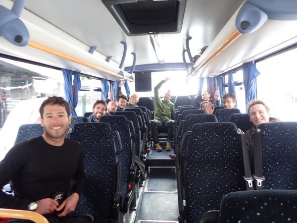 Après un trajet aller épique (à cause de chutes de neige à basse altitude bien étonnantes pour un 4 avril) en train entre Lyon et Modane, puis en bus jusqu'à Aussois, le groupe (sans Nico qui se morfond chez lui avec son ligament croisé antérieur rompu... :-( ) chausse les skis sous la neige et gagne tranquillement le refuge de la Dent Parrachée.