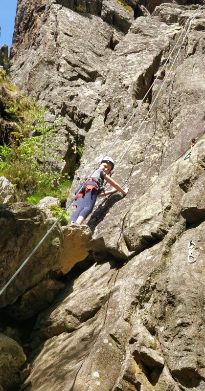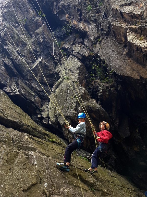 - du dépassement de soi : grimpe d'une 3c typée montagne super impressionnante, d'une 4c bien verticale, d'une 5a physique puis d'une 5c+ de 30m !