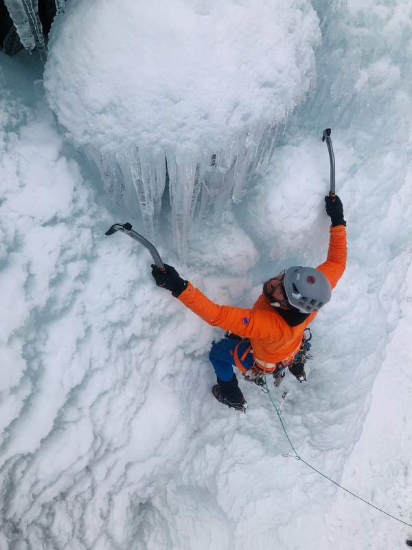Puis l’après-midi fut cette fois-ci l’occasion d’enchaîner les voies avec un piolet voire à mains nues (avec gants tout de même !!) afin de faire travailler le placement des pieds et le bon ancrage des crampons.