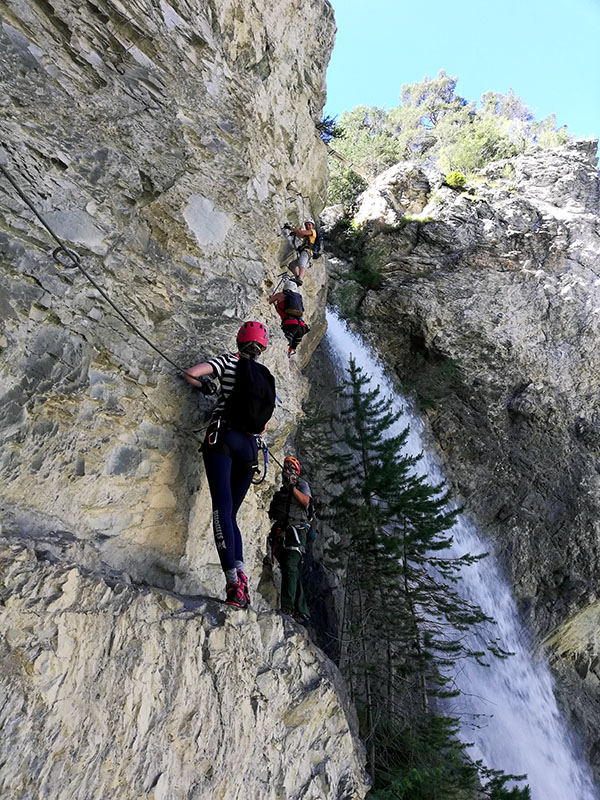 Après un bon resto à base de croziflettes (oui, ici on est au frais !) et une nuit au confortable camping de la Buidonnière, nous voilà repartis. Dans de magnifiques paysages, entre patrimoine culturel et grandeur de la nature, nous enchainons des via ferrata aux noms inspirants... "Les diablotins" pour se mettre en jambe et visiter le fort, suivie des bien nommées "Descente aux Enfers", tout au fond des gorges, et "Montée au Purgatoire", le long d'une belle cascade au souffle frais. La vue panoramique est impressionnante.