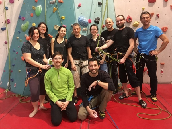 Mercredi 21 mars les grimpeurs et grimpeuses d’Azium et du Mur de Lyon se sont entraîné-e-s aux manips de descente en rappel. Alain et Marie C. , perchés sur une passerelle ou haut d'une voie , vérifiaient d’un œil vigilant les gestes des stagiaires : 1) poser un mousqueton collector, 2) se vacher au collector, 3) installer son machard sur la corde, 4) installer son descendeur sur la corde et sur sa vache courte, 5) se dévacher en mettant sa vache longue sur le brin à rappeler. Une manip à bien maîtriser, surtout quand il faut enchaîner les rappels en grandes voies… Pour certain-e-s ce fut la première descente en rappel, pour d’autres ce n’étaient que des rappels (c’est le cas de le dire) : mais tout le monde a passé le test avec succès, immortalisé par Alain.
