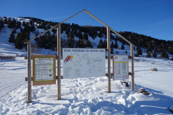 Situé au coeur de la Maurienne à une altitude moyenne de 1300 mètres entre les petits villages de Montaimont et Montpascal l'Espace Nordique du Grand Coin est un lieu idéal pour les amoureux du ski de fond classique, de la luge et des balades en raquettes. Le domaine est également tracé pour le pas de patineur mais il sera alors judicieux d'aller y skier avant la dinde. Exigente par ses dévers et son dénivelé, la montée au Col du Chaussy mérite néanmoins grandement le détour.