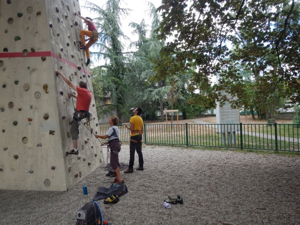 Dimanche météo mitigée d'un fin d'un mois d'août, mais nous parton pour ce site proche de Lyon dans l'Isère. Déjà un peu de monde, mais il y a suffisament de voies pour satisfaire les participants. La météo bascule vers midi avec la pluie, tout le monde s'abrite et range le matériel. Nous en profitons pour prendre des forces avec le repas tiré du sac, puis retour tout en échaffaudant un plan pour l'après midi car elle devenait de plus en plus ensoleillée en se rapprochant de Lyon. Finalement, cela c'est terminé au mur de la commune à Villeurbanne avec le moelleux aux pommes de Monique et le clafoutis aux cerises de votre rédacteur. F.PAILLIER