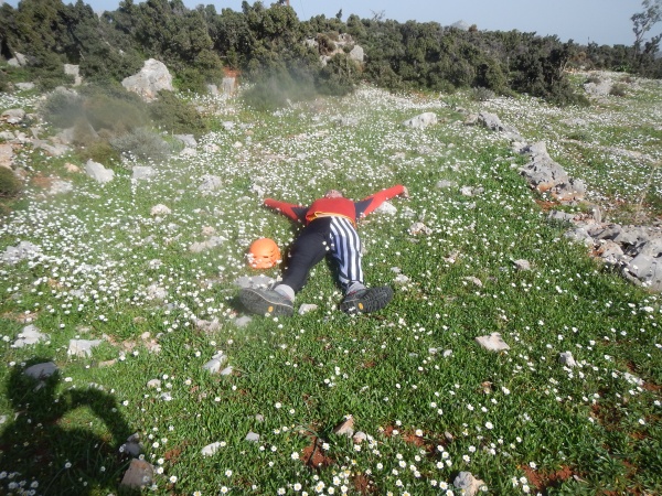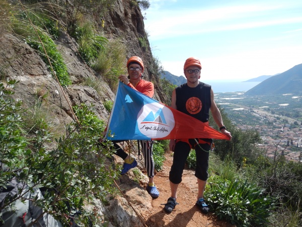 Ce lever de soleil, sur la terrasse du logement 5* était présent tous les matins. En effet un temps exceptionnel durant 10 jours a permis à deux adhérents du CAF LV dans un groupe de huit personnes de grimper dans le Péloponnèse en Grèce à Léonidio, un site tout neuf (2008). Des couennes pour tous les niveaux, bien équipées jusqu'à 40 m, voir plus avec des extensions de 15 à 20 m sur un rocher rouge, jaune, ou gris qui pique, qui accroche, ainsi que des grandes voies. Pour se substenter, de temps en temps un resto, mais aussi des repas mitonnés par les autres participants (patates sautées, filet mignon- riz, poulet curry- spaghetti, sauce bolognaise (maison)- couscous- crêpes, mousse au chocolat) et des oranges et des citrons locaux à tomber par terre. La crème solaire est déjà indispensable, les accès pédestres sont aisés et courts, mais les routes étroites d'où de petits véhicules de location depuis l'aéroport d'Athènes. F.PAILLIER