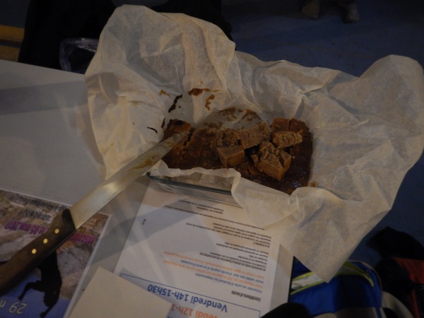 Fin du second trimestre au mur de Lyon2 par un jeu de vitesse en équipe  sur deux manches et faire sonner la cloche (c'est Pâques). Pour se remettre  de toute cette énergie dépensée, chacun a pu déguster un moelleux à la crème de marrons. F. PAILLIER