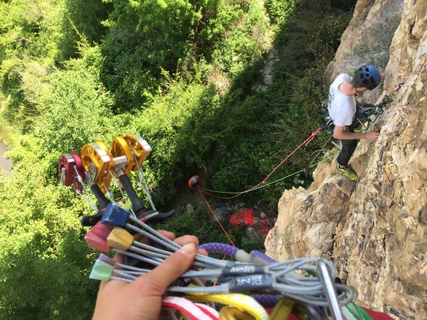 Ensuite, nous avons pu suivre une démonstration de notre guide Guillaume avant de partir directement dans les voies. Le but du jeu est de n'utiliser que le matériel pour progresser et se protéger, pas le droit à ses petits doigts et ses pieds pour progresser….