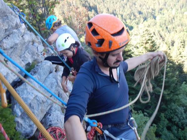 Pour cette sortie de rattrapage du cycle init2 couennes et GV, un site tout à fait adapté au col du Coq en Chartreuse avec le beau temps a permis de remettre les participants dans le bain après cette coupure dû au COVID. Le rocher est particulier, très dessiné verticalament, prises en pincettes, mais bien protégé et peu difficile sur les trois longueurs . Bières et tarte à la ruhbarbe ont clôturé cette journée. F.PAILLIER