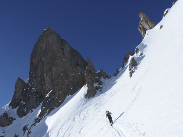 Le lendemain, on avait envie d'un grand tour poudreux. Et s'il y a bien un coin sauvage qu'on connait pas loin, c'est justement le Vallon du Coin ! Et quoi de plus beau pour y accéder que de passer au pied de la Pierra Menta, l'icone des lieux. Au final, un régal de poudre, une solitude sur quasi tout l'itinéraire et une belle boucle de 28km pour 2300m de D+ ! Quand même !