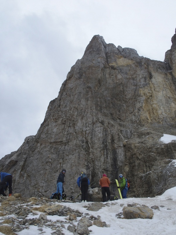 Pour la session de mars, nous décidons d'aller à la rencontre d'un massif que très peu connaissaient dans ce groupe (sauf Nico grand habitué) : Le Dévoluy. Ce massif atypique, possède de belles classiques mais aussi des itinéraires techniques et exigeants qui nous attiraient tout autant que la promesse d'une magnifique moquette. Malheureusement, un einneigement faible cette saison et du mauvais temps vont contrarier nos plans. Samedi, les sommets sont bouchés, une fine pluie ventée s'abat sur nous dès que nous franchissons les 2000m... Nous ferons le tour des vallons du coin avec un retour en ski-bucheron particulièrement apprécié de François. ;-)
