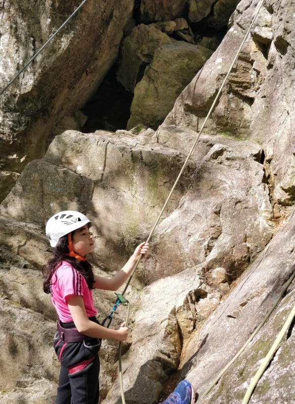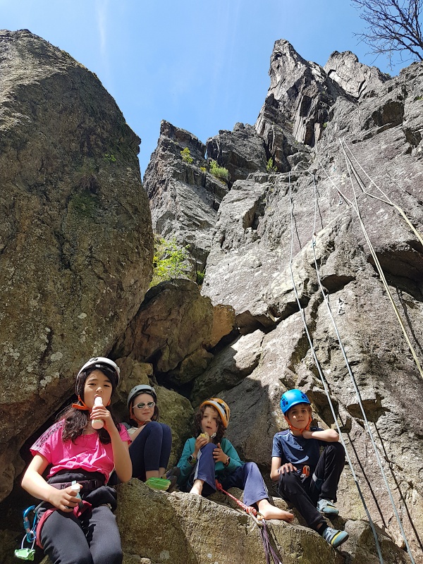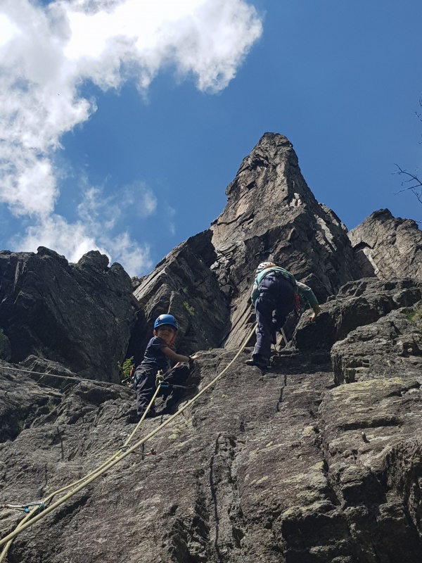 - du dépassement de soi : grimpe d'une 3c typée montagne super impressionnante, d'une 4c bien verticale, d'une 5a physique puis d'une 5c+ de 30m !