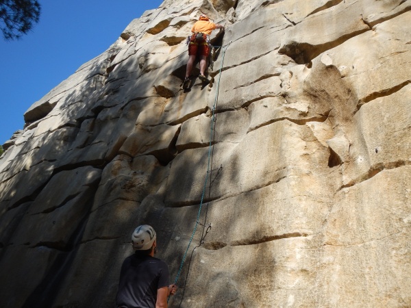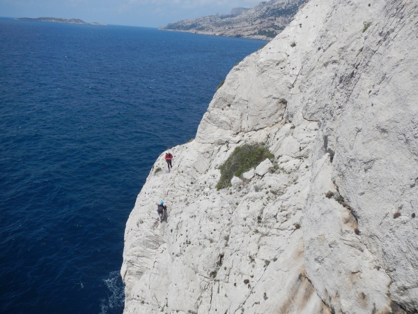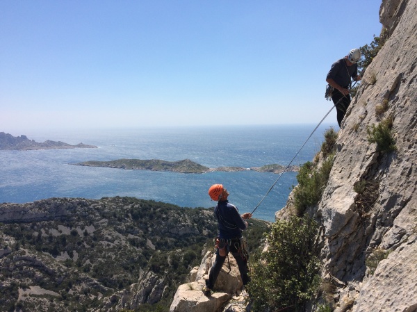 Cette Unité de Formation AUTONOMIE SUR GRANDES VOIES (niveau 7 du livret ESCALADE) avait pour cadre les Calanques. Le but durant cette semaine était de mettre en commun les règles de sécurité et de progression sur des voies de plusieurs longueurs. Cela permet aux candidats de pouvoir accèder au stage de moniteur grandes voies. La mer était toujours aussi bleu, mais la mto pluvieuse, ventée parfois a quelque peu perturbé le déroulement du stage. L'instructeur ESCALADE du comité régional des Hauts de France a su trouver les bons secteurs et un bon timing en fonction de ces conditions difficiles pour l'escalade. F.PAILLIER